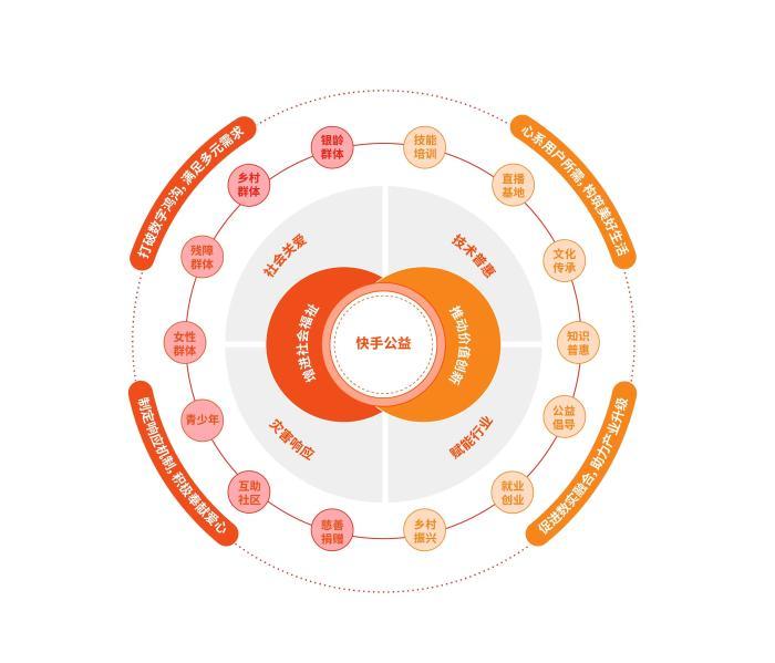 从助力乡村振兴起步,快手公益还扩展到更多社会议题,如就业帮扶、银龄关爱、知识普惠、传统文化传承、残障关爱等,希望构建一个人人参与、互帮互助的温暖社区,用数字技术推动普惠公益。